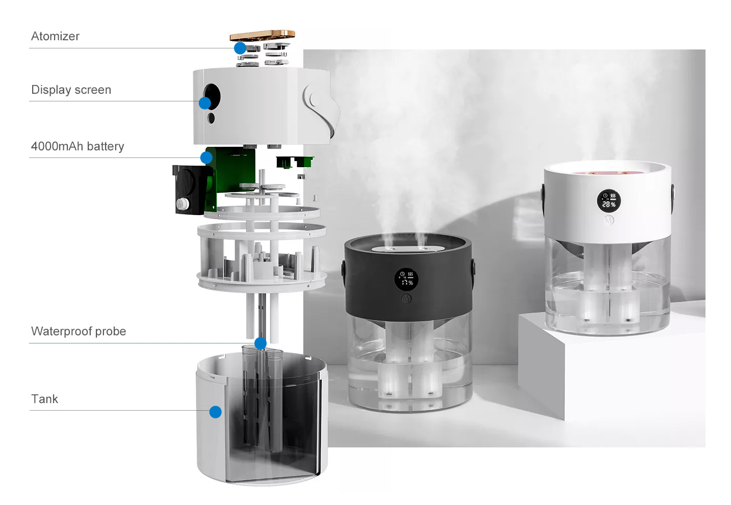With a built-in 4000mAh battery, you can take it wherever you go. Fully wireless humidification and smart features - enjoy comfort anytime and anywhere.